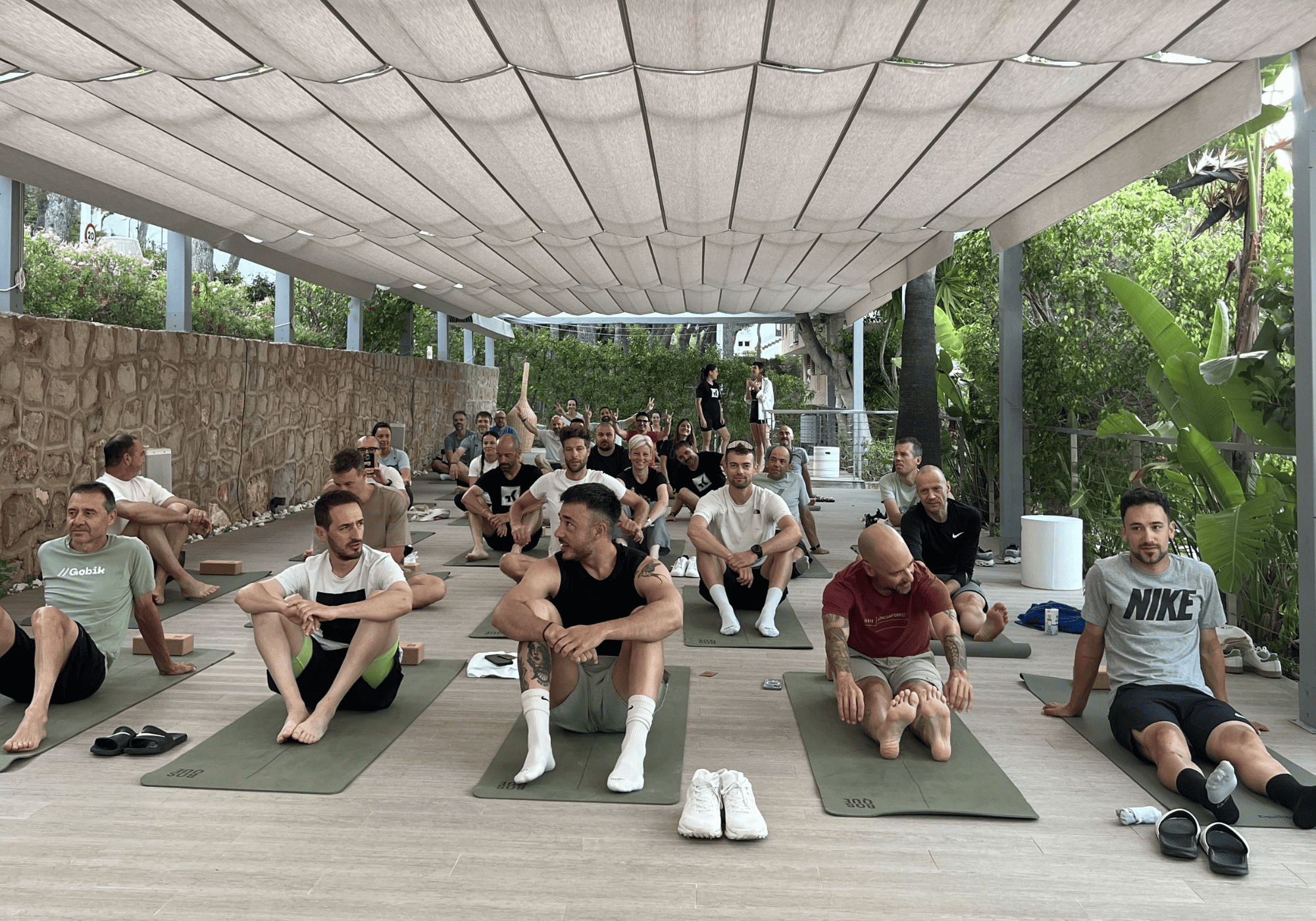 El día siguiente arrancó con una salida en bicicleta por una ruta cuidadosamente diseñada por nuestro equipo de Bellver Sport Experience, que permitió a los asistentes descubrir el entorno natural que rodea a Bellver. Al regresar de la ruta, los participantes disfrutaron de un brunch en el restaurante Tempus, que sirvió como punto de transición antes de dar inicio a la primera jornada de presentaciones de producto en la sala Zenit. La jornada cerró con la proyección de un vídeo personalizado para Gobik creado por el equipo audiovisual de Bellver Blue Tech Zone, específicamente para proyectarse en la sala Vortex, que aportó un momento de inspiración y orgullo de pertenencia. La experiencia concluyó con una cena distendida en Bosque Masía Bellver, tras la cual tuvo lugar uno de los momentos más memorables del evento: el desfile de la nueva colección de Gobik, celebrado sobre las pasarelas en plena naturaleza de Bosque, con un montaje especial de iluminación y sonido que convirtió el entorno en un escenario único.