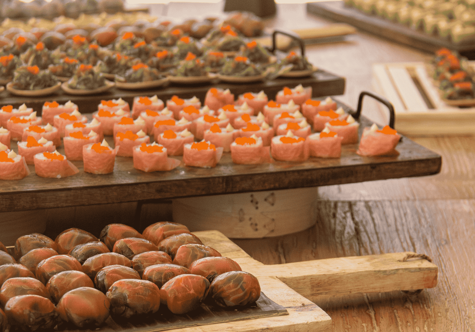 Contamos con servicio de restauración bajo petición y con cuatro espacios gastronómicos diferentes