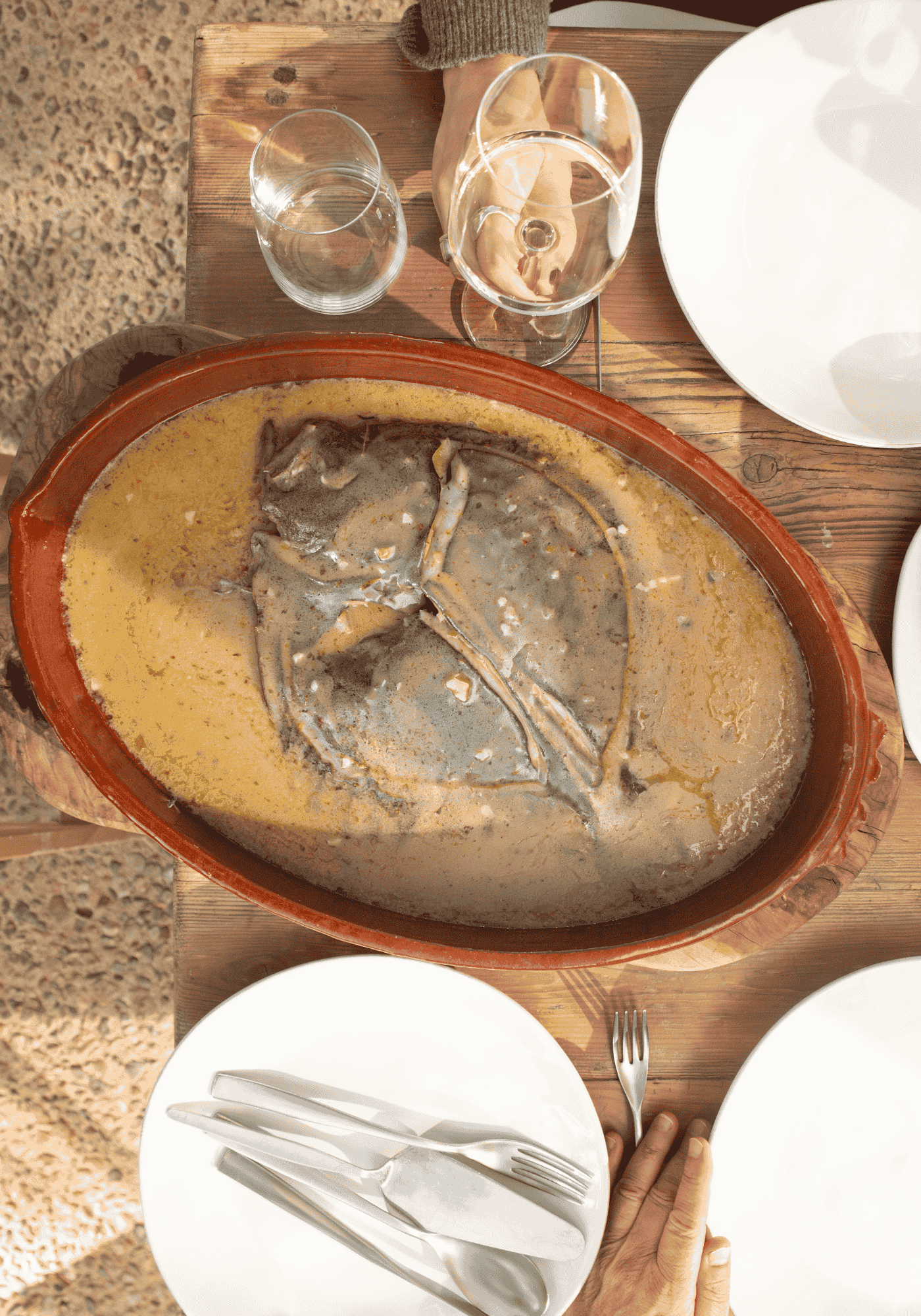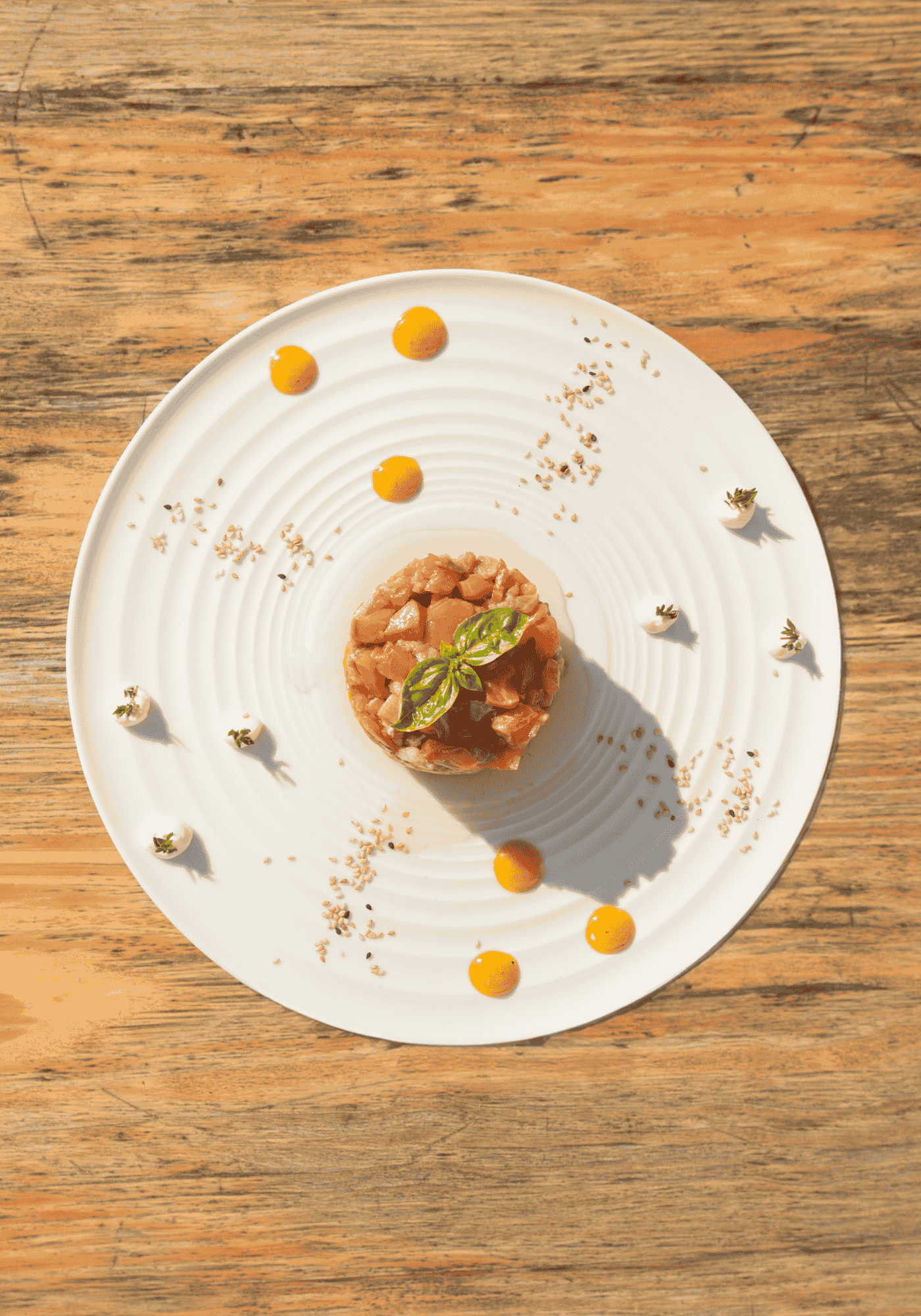 Inspirada en el mar, la montaña, los arroces de La Albufera y el aceite de oliva, su carta rinde tributo a los productos cercanos y a la historia de la propia masía.