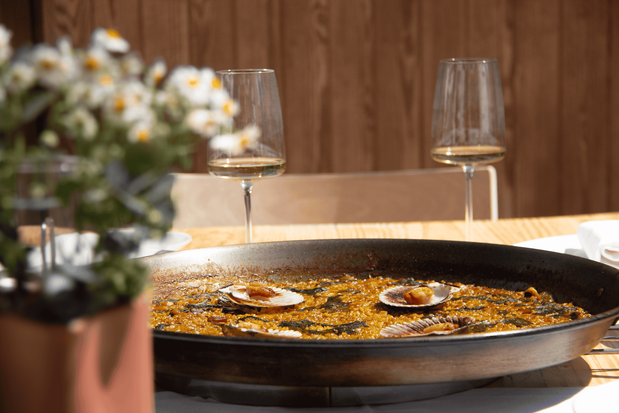 Inspirada en el mar, la montaña, los arroces de La Albufera y el aceite de oliva, su carta rinde tributo a los productos cercanos y a la historia de la propia masía.